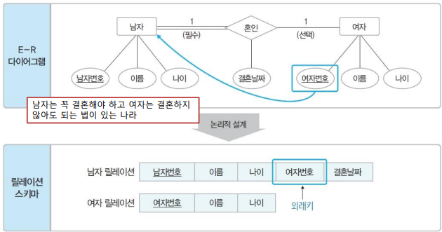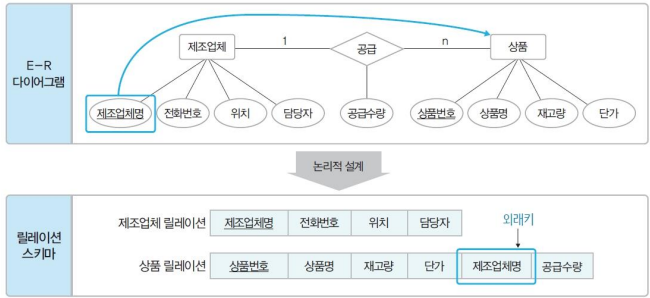 - E-R 다이어그램으로 개념적으로 표현