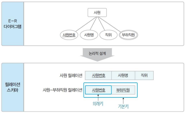 - 다중 값 속성은 새로운 릴레이션으로 변환된다.