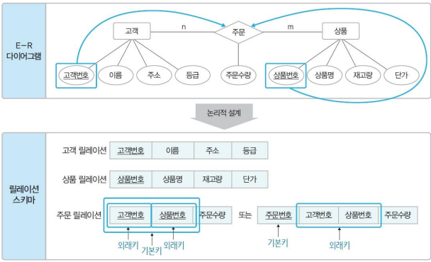 - 결과물 : 릴레이션, 스키마