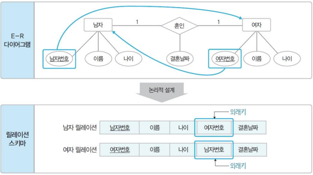 - 개념적 스키마를 논리적 모델링하여 논리적 스키마 생성